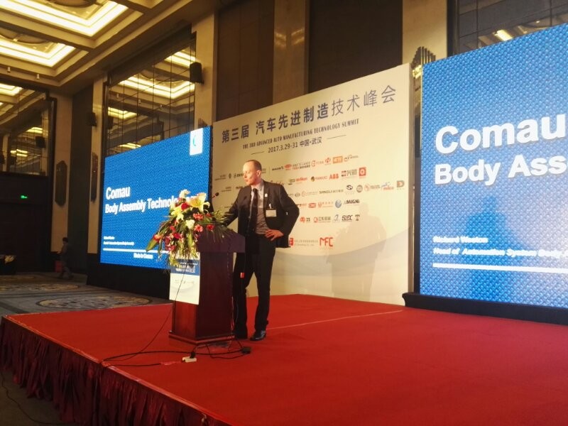 活動(dòng)現(xiàn)場(chǎng)(圖) 柯馬中國自動(dòng)化系統(tǒng)-焊裝事業(yè)部總經(jīng)理RichardWeston先生在此次峰會(huì)主論壇發(fā)表了柯馬焊裝技術(shù)的演講。柯馬自動(dòng)化系統(tǒng)-焊裝焊裝在全球有12個(gè)辦公室,5個(gè)研發(fā)中心和7個(gè)工廠??埋R焊裝在中國有非常專業(yè)的工程、制造、項(xiàng)目管理、現(xiàn)場(chǎng)管理和客戶服務(wù)團(tuán)隊(duì)。